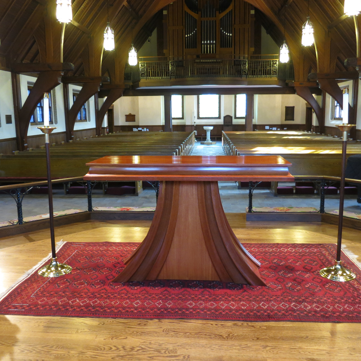 Altar built for Christ Church in Andover, Massachusetts. Built in mahogany, lace wood, and ebony. Follow the link for a picture essay of it being designed and built. designing-and-building-the-altar-for-Christ-Church-in-andover3